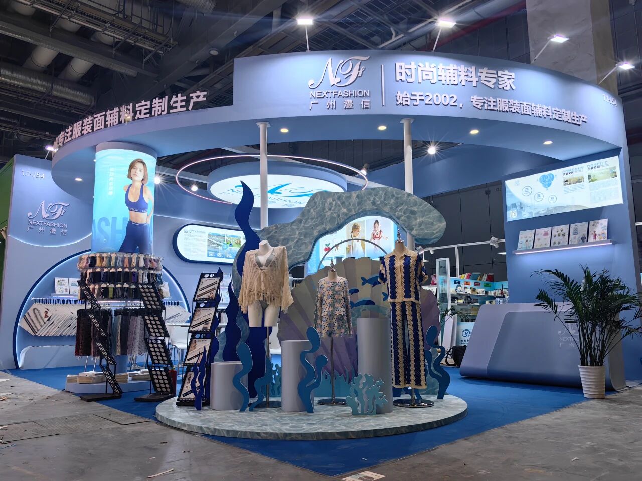 广州澧信服装辅料有限公司以“海洋风主题”为核心,在辅料展区1.1馆J54与面料展区6.2馆K117双展位同步亮相,首日便吸引逾千名专业买家驻足洽谈。